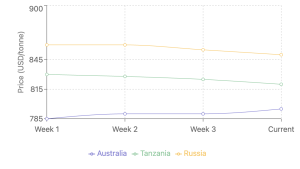For November-December shipments, Australia is now quoting $790 per tonne, up from $785 last week. Shipments to the UAE for October-November have risen to $830 from $810.